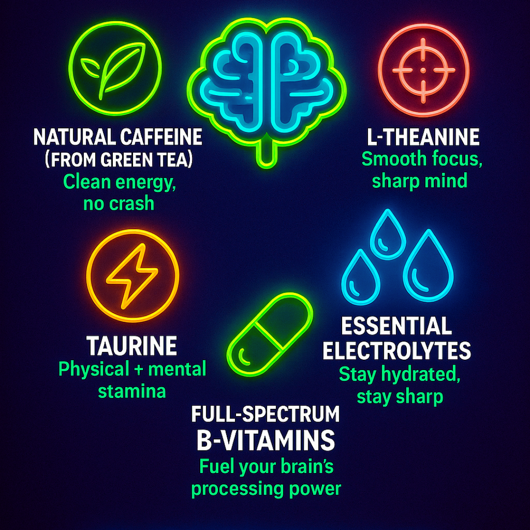 Let’s be real — you’re not losing because of your skills. You’re losing because your brain taps out before the match ends. Your focus slips. Your reactions slow down. And that cheap, sugar-loaded energy drink? It jacks you up… then slaps you with a crash. You end up tilted, frustrated — and outplayed.